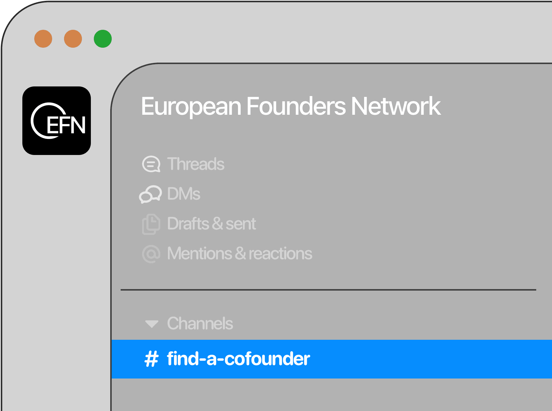 EFN is strictly for founders—solo founders or co-founders of startups and product ventures. You don’t have to live in Europe, but your work should be tied to European markets or ecosystems. Verification: every application is manually reviewed. We look for public proof points such as: • Company website or product page • LinkedIn profiles of you and the company • Registry listings, press mentions, demos, or repositories If something isn’t clear, we may ask a couple of short follow-ups. Investors, agencies, and service providers aren’t admitted as members (they may be invited as clearly labeled guests for specific sessions). Your co-founder is welcome to apply separately and must pass the same review.
